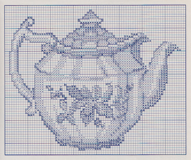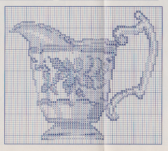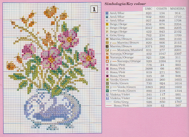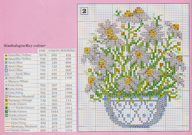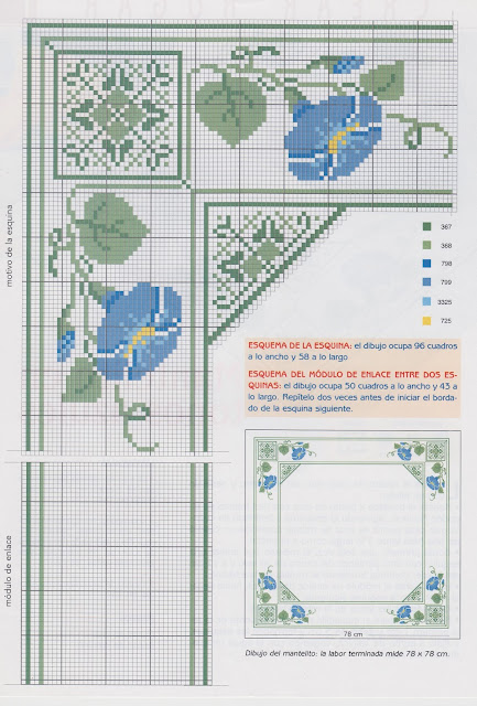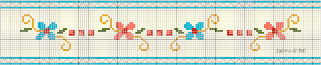 He vuelto ha entrar aquí para dejaros el esquema. Con un poco de paciencia y un programa lo he podido reproducir. Los colores son distinto al bordado de las toallas.