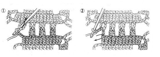 Aquí teneís el esquema, fácil de hacer, es un zig-zag de puntos altos y cadenetas.