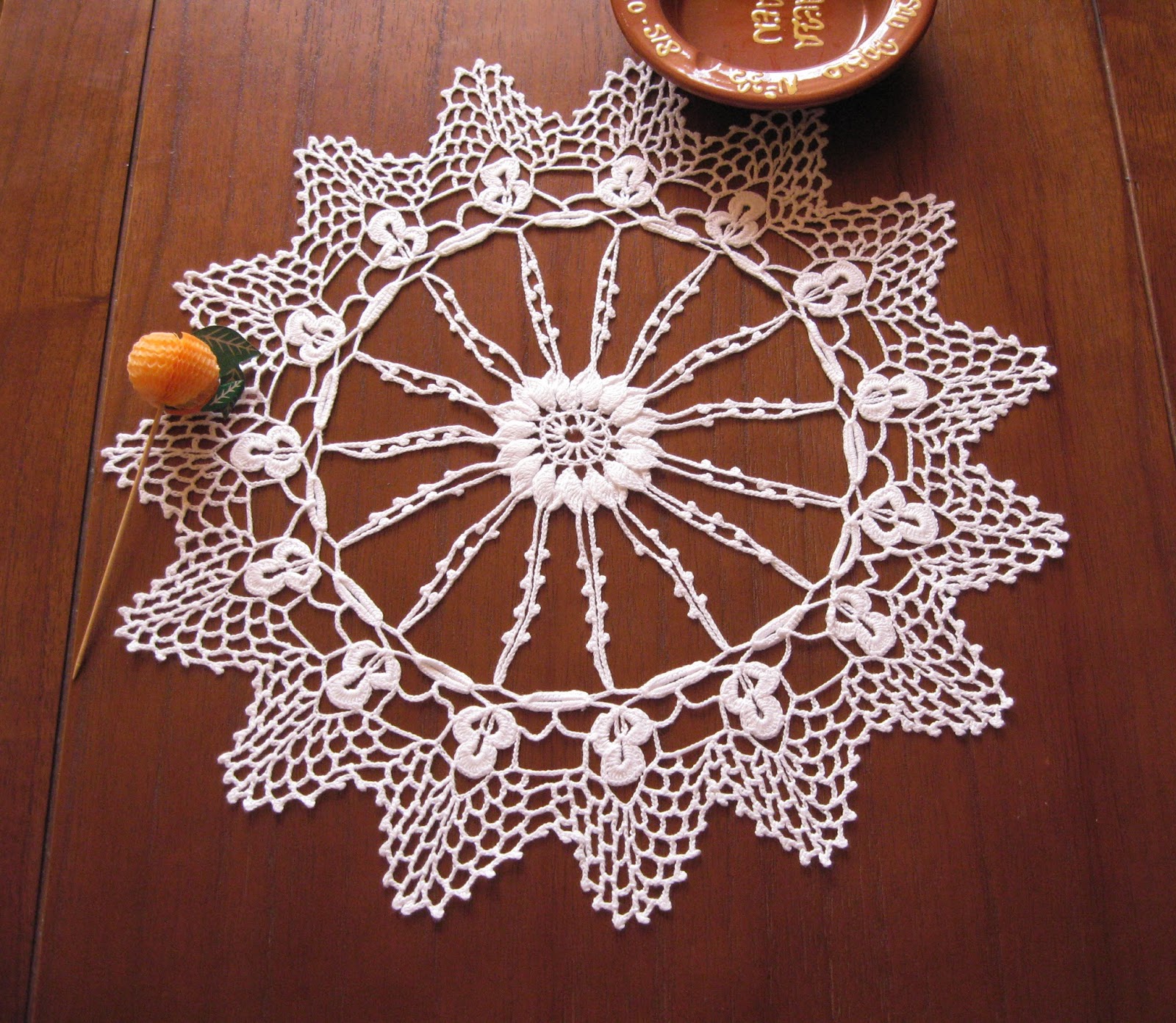 A toda la familia nos gusta el crochet y aquí teneís un tapete que lo ha hecho mi hermana. A mí, en particular, me gustan mucho los de estrellas, ya os dareís cuenta de ello, por que tengo previsto hacer alguno más.