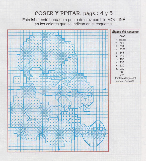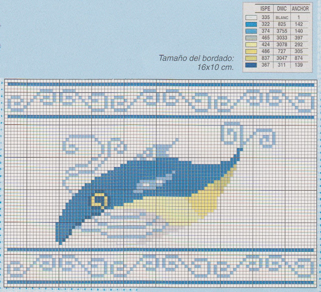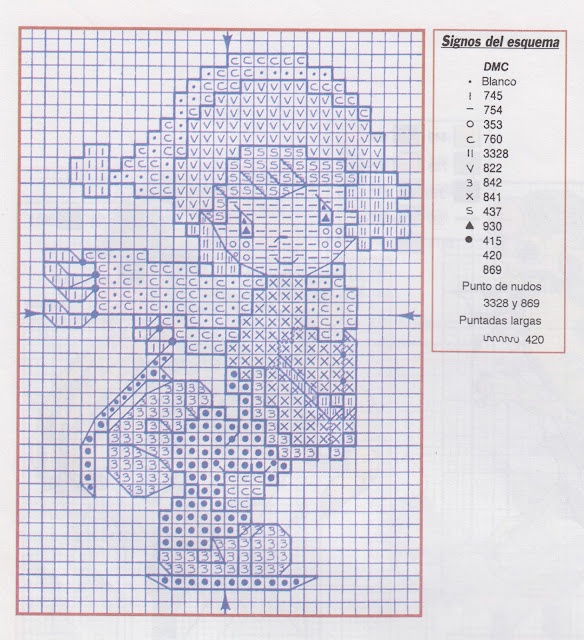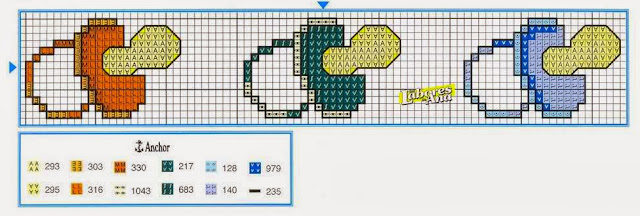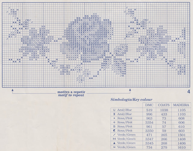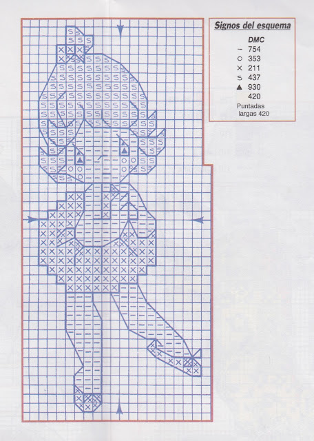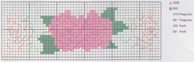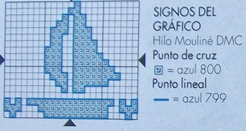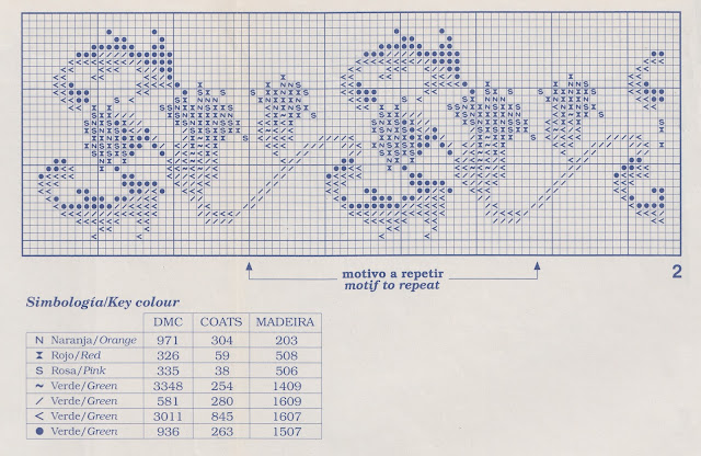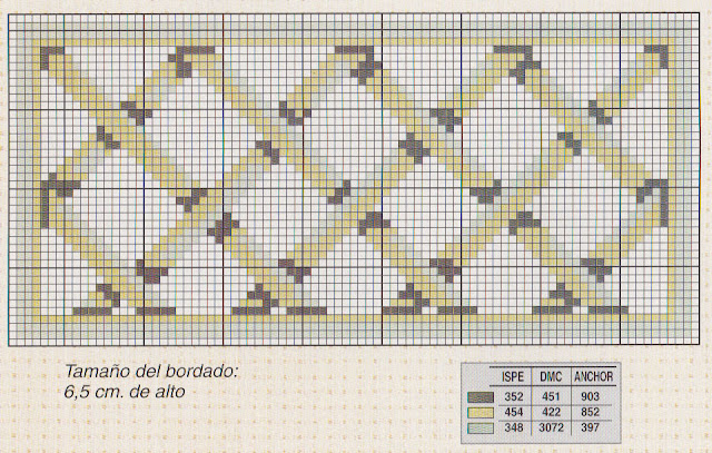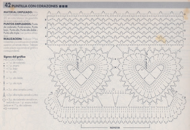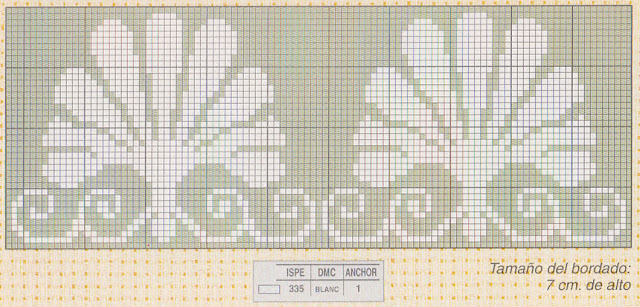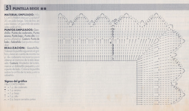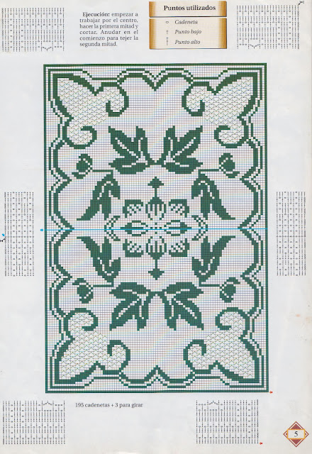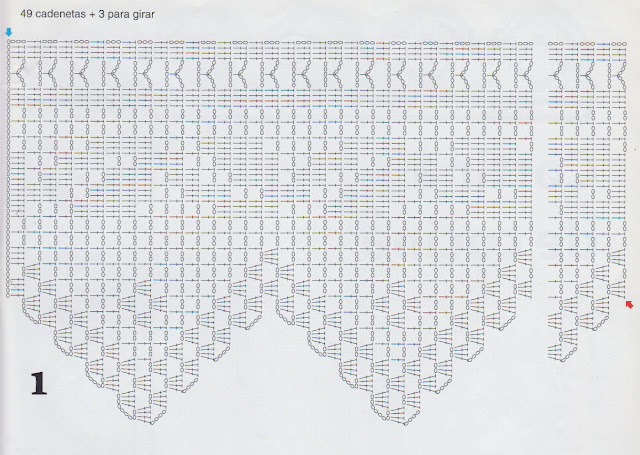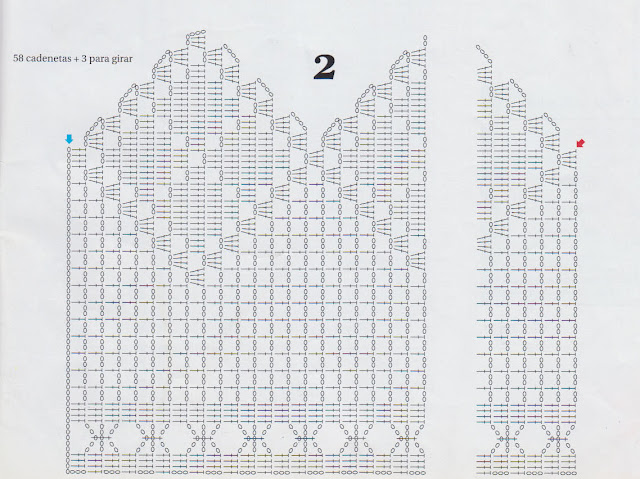 3ª v.: 1 p. alto, ( en el arco de abajo) 3 cad. y 1 p. alto. (en el arco siguiente) Rep.