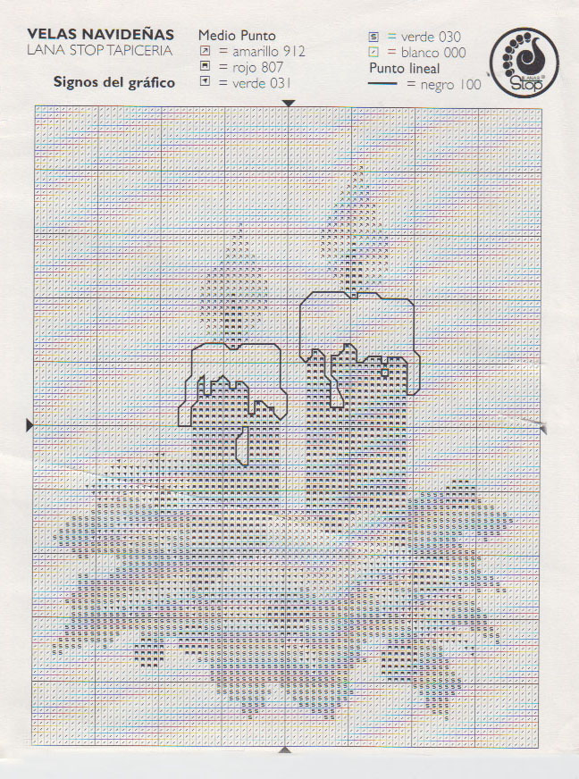 7ª v.: 4 p. alt., 2 cad. y 4 p. alt ( en el arco de dos cad.) 1 cad. y 1 p. alt.( en el arco sig.) 1 cad. Rep.