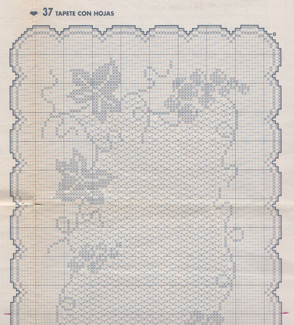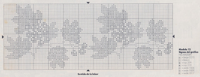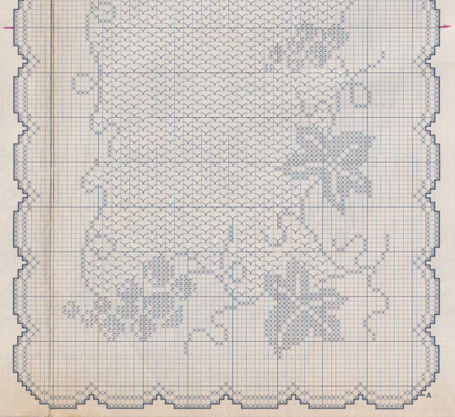 16ª v.: 1 p. alt. dobles y 1 cad..( se repite 11 veces en el arco de 2 cad ) 5 cad. y 1 p. alt. (en el p. alt. de abajo) 5 cad. Rep.